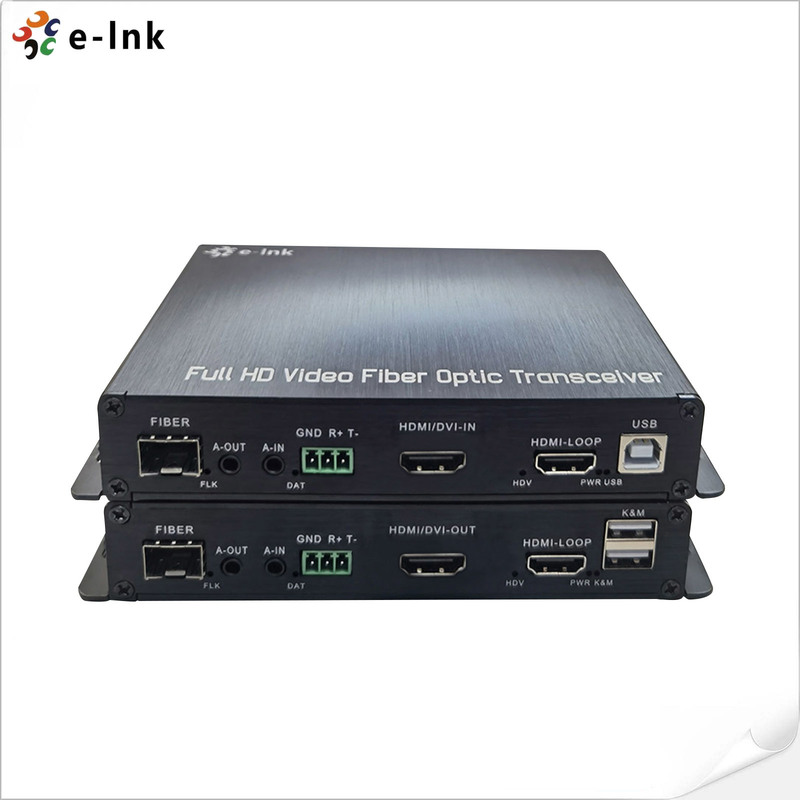 ระยะทางผ่านสายไฟเบอร์ออปติกเดียว มันรองรับความละเอียดสูงถึง 1080P, KVM, RS232